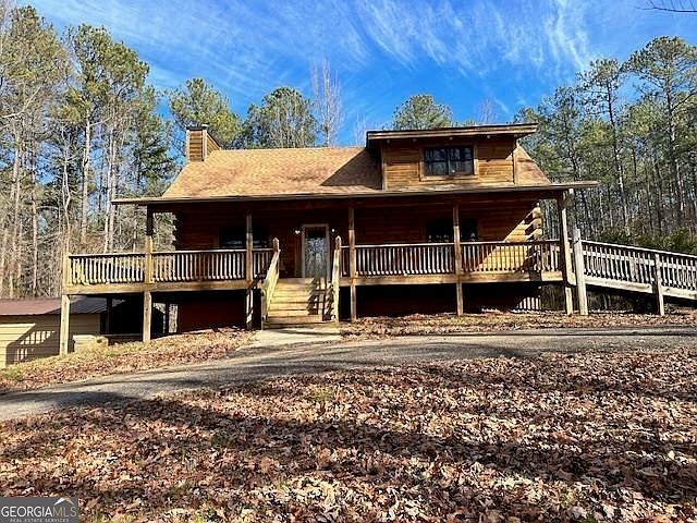 Welcome home to your own cozy and private Log Cabin on 10 acres. The first floor features an open concept living area on the main level including a living room, kitchen, dining room, laundry room and full bathroom. Wooden stairs bring you to a beautiful loft style master bedroom with a full bathroom and sitting area. Exiting from the kitchen down stairs is a basement with one finished room. There is potential for more bedrooms or could be used as a functioning work space. A huge porch wraps around 3 sides of the beautiful log cabin giving you plenty of space to entertain or relax with a cup of coffee. Storage building off of the house for your needs. Hilltop living is waiting for you surrounded by your secluded 10 acre wood.