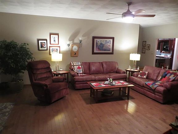 Fabulous 3 bedroom, 2 full bath brick and vinyl ranch style home located just west of historic Lincoln, Illinois on 5.00 beautifully maintained/landscaped acres a rare find! Inside, you will be welcomed by a comfortable foyer that leads to a wonderfully large living room with ample floor space, gorgeous newer hardwood flooring, and large Anderson doors that lead to the dream back deck/backyard. Located just off of the living room, you will find a 15X9 extra room that also features hardwood flooring along with ample natural light could serve as a great office, den, or potential fourth bedroom if needed/desired. The gorgeous eat-in kitchen boasts stunning ample dark cabinetry, under cabinet lighting, tile backsplash, tasteful quartz countertops, dishwasher and microwave to remain, a terrific center island/breakfast bar with granite countertops, and large adjacent 12X12 dining area that will easily accommodate a large table and chairs. Just off of the kitchen, there is a wonderfully located spacious laundry/mudroom with ample cabinetry and operable sink that provides direct access to the attached garage. This superb rural property also features a highly desirable split bedroom concept master bedroom features amazing floor space, a super large walk-in closet, and a dream full private bath with two separate vanities, corner shower, and whirlpool tub the other two bedrooms are also generous in size and feature an adjacent full hall bath that has been totally remodeled and features wonderful tile work must see to truly appreciate! An amazing virtually maintenance free partially covered rear deck was just added this past summer and is composed of composite material a truly remarkable place to relax and/or entertain family and friends while overlooking your little slice of paradise! Property also features a large two car attached garage, both front and side covered porches, a superb 24X36 fully insulated Ragland outbuilding complete with electricity that could easily accommodate 2+ vehicles in addition to lawnmowers, four wheelers, etc., newer aerobic septic system (2010), new architectural roof (2013), and natural gas service (NO propane!). West Lincoln-Broadwell school district. Situated on 5.00 beautiful west side acres, this showstopping 3 bedroom, 2 full bath upgraded ranch style home is without a doubt a rare find in today's market! Don't miss your opportunity to own 1682 700th Ave., Lincoln! WOW!