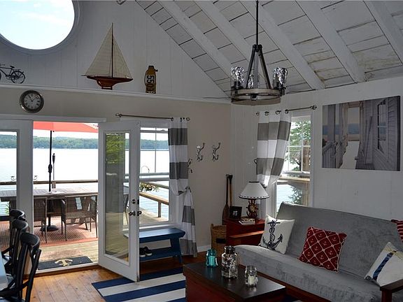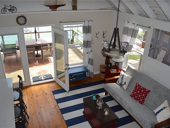 Expansive lake views, lovely terraced lawn, natural landscaping and multiple gathering areas create a wonderful backdrop for this recently renovated beach cottage. No expense was spared with top of the line appliances, quartz counters and high end nautical light fixtures & hardware throughout. An open floor plan with French doors leads to a lovely deck and wonderful loft space overlooks the lake bringing the feeling of outdoors in. To top it off, there is plenty of parking and two new sheds with electric providing lots of extra storage space.