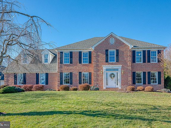 Step into a home that exemplifies love, care, and extraordinary attention to detail. This 4-bedroom, 2.5-bathroom brick-front Colonial in the exclusive Pleasant View Farms community is a true testament to meticulous maintenance and thoughtful updates. Nestled on a 1.18-acre flat lot with immaculate landscaping, this home offers over 4,400 square feet of finished living space and reflects a level of pride that is unmatched. From its timeless design to its pristine condition, this property is ready to welcome you with open arms. The inviting foyer sets the tone with gleaming hardwood floors, wainscoting, and a classic brass chandelier. Natural light pours through the decorative transom and sidelights, highlighting the impeccable craftsmanship throughout. The formal living room features crown molding and large windows, offering a serene and spotless space for relaxation. The seamless flow leads to the dining room, complete with wainscoting, crown molding, and a large window overlooking the backyard—ideal for hosting gatherings. The updated kitchen is both stylish and functional, with rich wood cabinetry, granite countertops, and a deep red tile backsplash. Stainless steel appliances include a new French-door refrigerator (2024) and dishwasher (2019). The spacious center island doubles as a breakfast bar, while recessed lighting highlights every detail. Adjacent is the breakfast room, with vaulted ceilings, exposed wood beams, skylights, and a pellet stove that creates a warm and inviting ambiance. Sliding glass doors lead to a covered patio, seamlessly extending the living space outdoors. Next to the breakfast room, the family room provides a cozy and inviting space for relaxation and entertaining. The brick fireplace with a wooden mantel serves as the focal point, complemented by hardwood floors, crown molding, and recessed lighting. Beyond the family room, the private home office offers a quiet retreat, featuring neutral carpeting and a functional layout. Additional highlights of the main level include a stylish half-bathroom updated with luxury vinyl plank flooring (2022) and granite finishes, and a meticulously maintained main floor laundry room, also featuring luxury vinyl plank flooring, overhead cabinetry, and a utility sink. Upstairs, the primary suite serves as a tranquil retreat, showcasing hardwood floors, a walk-in closet, and impeccable upkeep. The en-suite bathroom is thoughtfully designed with an extra-long granite vanity, a soaking tub, and a glass-enclosed shower. A bench adds convenience to the dressing area, making the space as functional as it is elegant. Each of the three additional bedrooms reflects the same level of care, with ceiling fans, plush new carpeting, and generous closet space. The hall bathroom, with its ceramic tile flooring, tub/shower combination, and tasteful finishes, is immaculately clean and well-maintained. A fully floored attic provides organized and tidy storage options, and can be finished as office or bonus room. The finished basement is spotless offering a large recreational area with recessed lighting and carpeting, ideal for a range of activities. Additionally, the basement features a utility room and an unfinished area, offering abundant storage and flexibility for future customization or use. Step outside to experience the meticulously maintained covered patio, complete with a ceiling fan for added comfort. This space is perfect for al fresco dining or relaxing while overlooking the flat, manicured lot. Mature trees and immaculate landscaping enhance the property’s curb appeal, while the three-car attached garage and expansive driveway provide ample parking and convenience. This home’s extensive updates reflect the owners’ unwavering dedication to care and maintenance, including: Roof (2009), HVAC systems (2022), Water heater (2023) and many more. Every corner of this home shines with cleanliness and care, offering timeless charm and modern convenience!