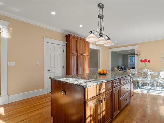 • Features: Flooring - Hardwood, Dining Area, Countertops - Stone/Granite/Solid, Countertops - Upgraded, Kitchen Island, Cabinets - Upgraded, Deck - Exterior, Exterior Access, Open Floorplan, Recessed Lighting, Stainless Steel Appliances, Gas Stove, Lighting - Pendant, Crown Molding