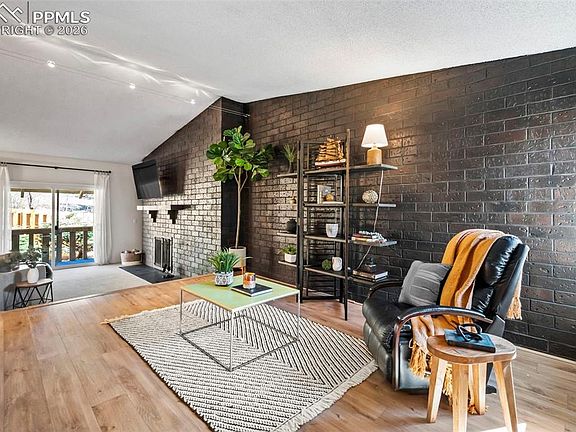 Lakeside living w/mountain views, natural serenity, and effortless style. This beautifully updated 3-bedroom, 2-bath ranch-style condo is tucked within the peaceful setting of The Cove at Woodmoor, offering a rare blend of privacy, views + low-maintenance living. Inside, an open-concept layout is enhanced by updated LVP flooring, new carpet, abundant natural light + a striking exposed brick feature wall that adds warmth + architectural interest. The great room is anchored by a wood-burning fireplace + sliding doors that lead to a covered balcony—ideal for quiet moments surrounded by nature. Just beyond the great room, a bonus area adds valuable flexibility—perfect as a home office, creative or wellness nook. Open yet distinct, it offers natural separation while maintaining the home’s airy, connected feel. The updated kitchen features stainless steel appliances + a generous counterspace that opens seamlessly into the living spaces, while a dedicated dining area offers room to gather + entertain. The primary suite is a true retreat, featuring a private en-suite bath, walk-in closet and its own balcony w/stunning views of Pikes Peak + Woodmoor Lake. The additional spacious bedrooms provide comfortable space for guests or everyday living. Both bathrooms have been thoughtfully updated w/tasteful finishes + tile surrounds. An oversized garage is complemented by an interior storage room, offering exceptional space for gear or seasonal items. Surrounded by mature pines + open space, residents of The Cove at Woodmoor enjoy access to Woodmoor’s private trails, stocked fishing ponds, community open spaces, + The Barn, a beloved community center for gatherings and events. Located near Woodmoor Open Space, Palmer Lake, award-winning Lewis-Palmer District 38 schools, and just minutes to shops, dining, I-25—this home offers a lifestyle that feels connected yet refreshingly calm. Low-maintenance living. Elevated surroundings. A setting that invites you to slow down and stay awhile.
