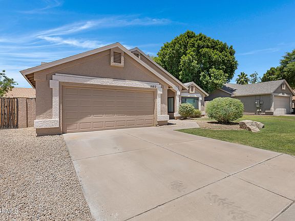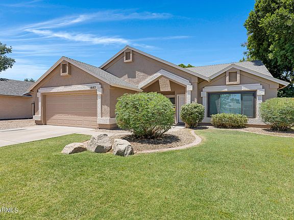 Fantastic, move in ready 4 bed / 2 bath single level home in fantastic Chandler location w/ low HOA. Windows replaced in 2018 & AC mini split for garage was set up in 2022. Great curb appeal w/ lush green grass & covered front entry. Bright & open floor plan w/ vaulted ceilings. Spacious living room & dining room w/ built in buffet w/ glass front cabinets. Family room w/ delightful brick fireplace opens to kitchen & breakfast nook w/ bay windows. Kitchen offers high ceilings, plenty of counter & cabinet space, as well as island w/ bar top seating. Front bedroom has double door entry w/ tile flooring & would make perfect home office, playroom or guest room. Primary bedroom w/ private exit to backyard has vaulted ceiling, large walk-in closet & private bathroom w/ dual sinks, seated vanity area & shower w/ glass block window, dual shower heads (including handheld) & grab bar. Second bathroom also has convenient dual sinks & tub/shower combo. Inside laundry room w/ built in storage cabinets is a plus! 2 car garage w/ storage, including rolling workbench. Backyard offers covered patio, grass, healthy shade tree & paver border/walkway to spacious side yard w/ gate to front. Located w/ easy access to the 202, 101 & 60 freeways w/ endless shopping, dining & entertainment choices just minutes away. An easy 20 minutes or so to ASU & Sky Harbor Airport & in the award winning Chandler Unified School District. This is easy to show & will not last long so come check it out today!