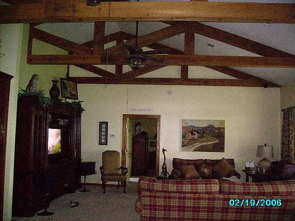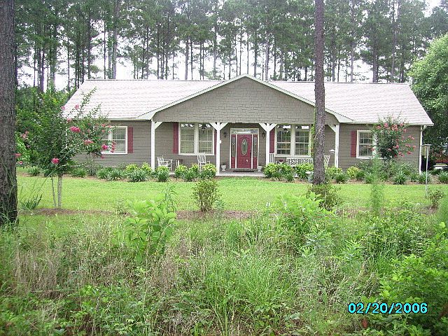 Quality built home on 8+ acs. of wooded pines. The house has 3 large bedrooms. Master suite has a large walk-in dressing room/closet. There are 2 complete baths---master bath with skylight and big walk-in tiled shower. The 2 other bedrooms each have a whole wall of closets. The large open combination of LR, DR & kitchen has 17 ft. beamed cathedral ceilings. The kitchen features almost too many kitchen cabinets that were all custom made of S. Ga. cherry trees. The adjoining pantry had a complete wall of cabinets, plenty of room for washer/dryer & freezer. House is wheelchair accessible. The 20 x 20 pine paneled den has a stacked stone FP which reaches to the top of its pine paneled cathedral ceiling. Lots of windows look out to back of property where at time one can sneak a peek at the wild life of the area. The 30 x 60 metal building has a woodworking shop, or other use, with roll up door, & 1 BR,1 Bath apartment with laundry set-up, huge walk-in closet & LR/Fully equipped kitchen.