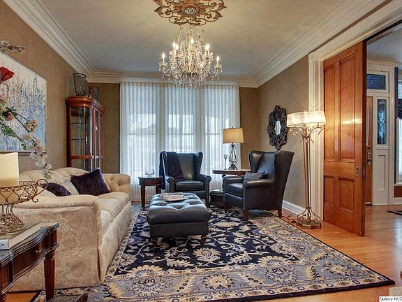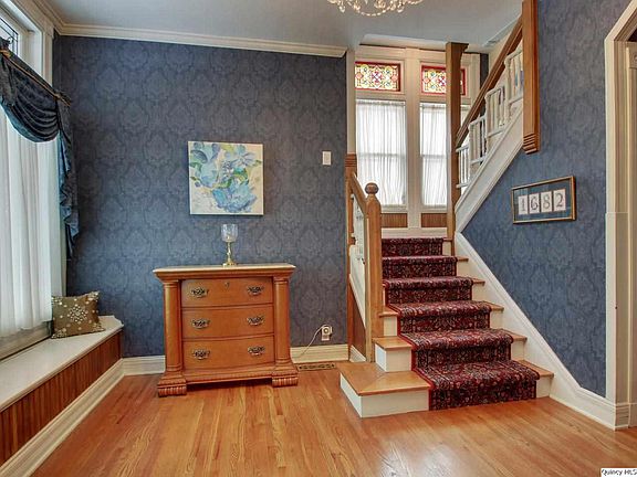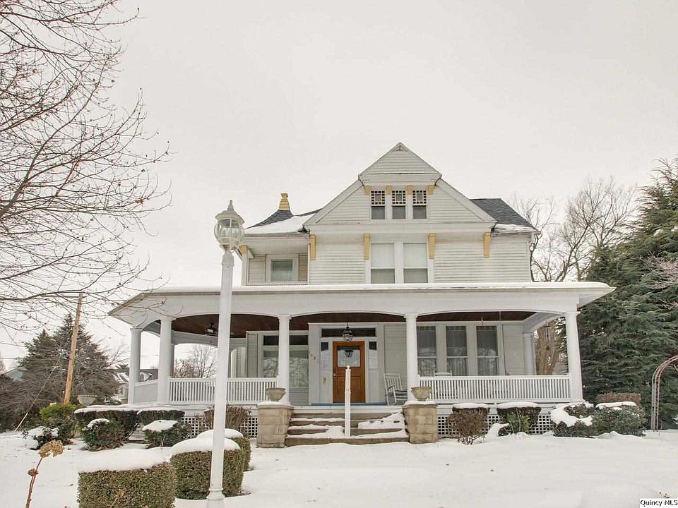Impressive double-door entryway with original etched glass, gorgeous hardwood floors, large formal dining, ornate stained-glass at landing of staircase to second floor, amazingly beautiful (working) pocket doors, custom master bath with heated floors, family and formal living room with gas fireplaces, several built-ins including desk, bed and dresser, updated wiring, plumbing and 3 year old roof. One new furnace in 2018, two air conditioners in 2010. Large covered front porch and main floor laundry with storage.
