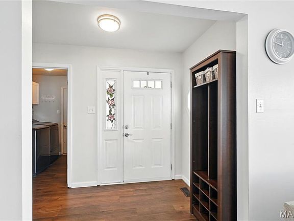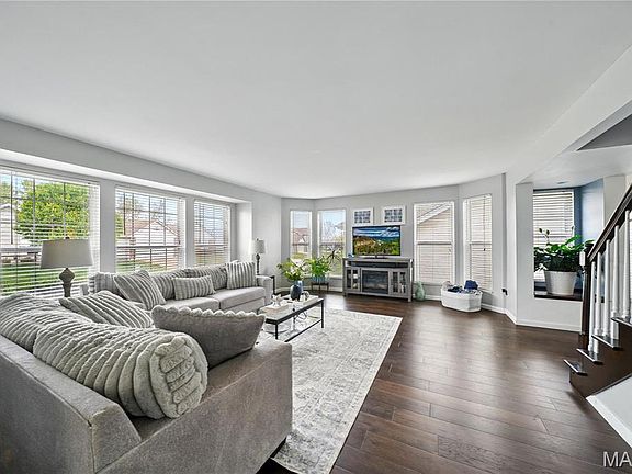 Welcome home to this beautifully updated 2 story home in desirable Brennen's Glen subdivision. This home is light and bright throughout, is tastefully decorated with modern tones throughout. Engineered wood flooring runs through the main level. The large entry foyer leads to the spacious living room with box bay window. The updated kitchen is fabulous light gray shaker style cabinets, quartz counters & stainless appliances. A large bay window on both sides of the breakfast area, along w/door leading out onto the deck overlooking the fully fenced backyard. Classy half bath and main floor laundry round too! Center staircase leads upstairs to three bedrooms and 2 full baths, with the primary bedroom suite having a walk-in closet w/organizers and updated ensuite bath with shower. Mostly finished lower level provides more space for entertaining, home office or play area and ample storage space. Conveniently located minutes from Gravois Bluffs shopping & elementary school.