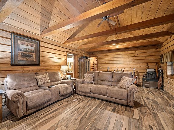 Contract fell thru! Open spaces, one of a kind house built off the timber of the land. Originally a 2 bedroom 2 bath in the main house, owners started transforming the second bedroom into a laundry room then started to add another 20x40 master with fireplace insert until owner could not finish due to health. Solar, well water on a triple filtration system, 2 fish ponds, 3 pastures fenced, Cedar master, Walnut in kitchen, please read Welcome letter to know all the extras! RV hookup!