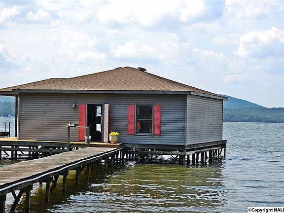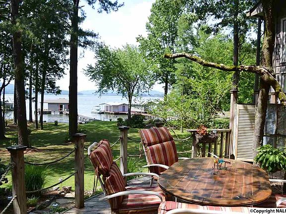 Main Channel Waterfront Home & 2 Slip Boat House with Electric Hoists and 3 Roll up doors, good water depth, 174+/-ft of shoreline, and great Lake Guntersville Views! Home offers 4 Bed / 2.5 Bath, 2,200+/-sqft, Great Room with Vaulted Ceiling, masonry stone fireplace, Kitchen with built-in dinette breakfast area, neat loft bedroom with its own bathroom, lots of entertaining space, lakeside deck, professional landscaping, & lake fed irrigation system. Very relaxing atmosphere on the Lake!