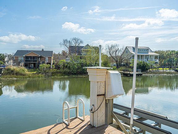 Elevated Home on Tidal Creek with dock and boat lift! The floorplan is spacious and great for entertaining. As you enter, you will notice the hardwood floors, natural light and spacious room. The family room is centered by the fireplace and overlooks the backyard. Kitchen has ample storage and countertop space and opens into a breakfast area. Separate dining room makes it easy to entertain. The primary bedroom is on the main level with walk in closet, bathroom with dual sinks, garden tub and shower. Upstairs you will find 2 bedrooms, full bathroom and a bonus room. The outside space in this home is a must see! Grill out and relax on the covered back deck and enjoy the views of the creek. Half acre lot with a dock on a tidal creek! The dock has a boatlift.3 car garage with extra storage and a garage door that opens to the backyard.