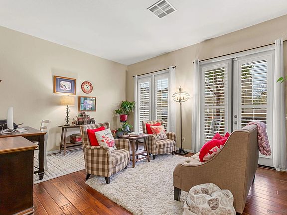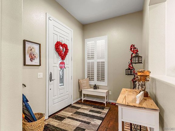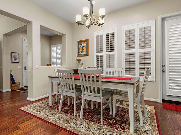Immerse yourself in luxury living in this captivating 6-bedroom oasis in Otay Ranch! Step inside and be greeted by a breathtaking open concept granite kitchen. Imagine whipping up culinary delights with gleaming stainless steel appliances, a center island for food prep and entertaining, and decorative pendant lights that add a touch of sparkle. Deep, rich, upgraded engineered hardwood floors flowing seamlessly throughout the main living areas. These floors create a warm and inviting atmosphere that's easy to maintain. A formal living room fit for grand occasions. French doors open onto the patio, blurring the lines between indoor and outdoor living, while built-in shelving and elegant plantation shutters add a touch of sophistication all throughout the home. With the low-maintenance yard, spend less time on yard work and more time enjoying the California sunshine in your private outdoor oasis, perfect for hosting memorable gatherings with friends and family. Home is equipped with paid solar panels. All of this in addition to a welcoming neighborhood with amenities such as Montecito club house and pool, parks, trails, shopping centers and award winning schools.