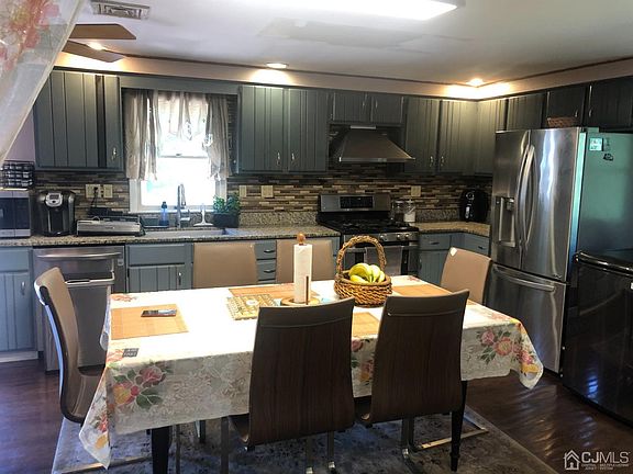 Perfect combination of location and lifestyle. Tranquil park like 1.75 acre yard with open space and wooded area. Backs to Green Acres preserved land. Across from Thompson Park. Parking for 7 cars. Paver entrance. Main level of home has an open floor plan with high quality hardwood floors and cozy wood burning fireplace. Kitchen has up-to-date stainless steel LG touch screen appliances, granite countertops, deep 33'under mount sink, tiled back slash, pantry and recessed lighting. Dining room has sliders to 12x20 ft deck. Spacious bedrooms. Lower level has a second kitchen, full bath, bedroom and large entertainment area with wood burning stove with sliders leading to patio. Close to high school, middle school, library, post office, shopping center and NJ Turnpike exit 8A.