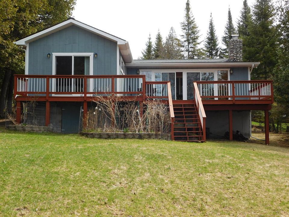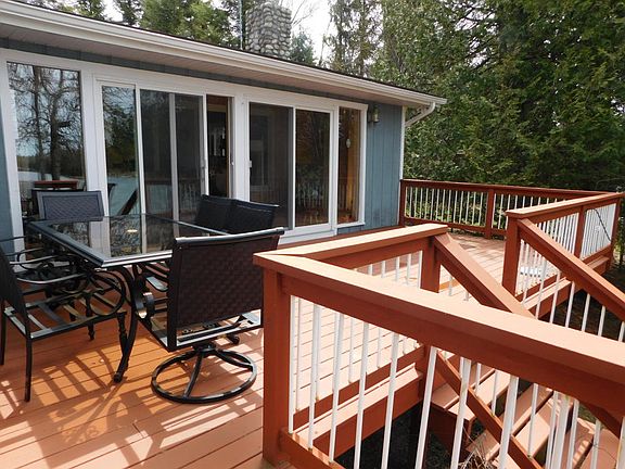 3 bedroom waterfront home located on protected Muscoe Bay in the beautiful Les Cheneaux Islands. Home has been mostly remodeled with an added master bedroom and bath all walls of cedar In the kitchen newer maple cabinets with retractable drawers comfortable living room with stone fireplace. house has attached open deck for your views of the water and a bright sunroom for cooler evenings with Out front is a garden plot with a well groomed lawn. The dock to tie up your watercraft and cruise the island chains and also to find top fishing of all species. Out back is a 30x30 garage for your car and toys, come see this property before it is gone