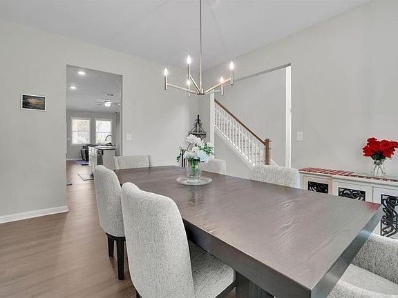 Modern fixturesLarge eat-at islandStainless steel appliancesSpacious dining roomDual closetsDual sinksRecessed lighting