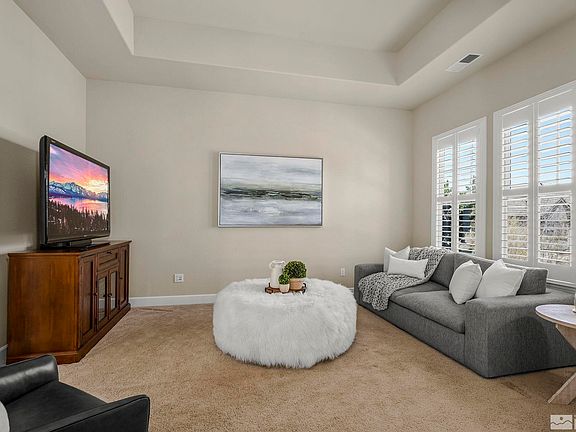 Nestled in the heart of the breathtaking Montreux gated community, with 24 hour security, this stunning contemporary home offers an exclusive lifestyle that is truly one-of-a-kind. A spacious and well designed single level layout, the home features 4 bedrooms, 4 and a half bathrooms, an office, and an oversized 3-car garage. The interior courtyard offers a peaceful retreat for outdoor living and entertaining. While the backyard has views of the Sierra mountains., This over 1/2 acre lot is tucked into its own private peninsula, making it one of the most unique lots in Renaissance. Separate membership for Montreux Golf and Country Club which is Northern Nevada's premier destination for golf enthusiasts, designed by the legendary Jack Nicklaus. The club offers an impressive array of amenities for its members with a fitness center, fitness classes, tennis/pickle ball courts and a pool and hot tubs. The exceptional clubhouse offers excellent dining options.