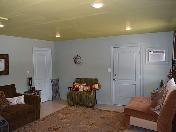 Property is an efficiency style home. First room you enter into has a half bath. The larger room in the back has a full bath, a closet, and simple kitchen. The garage is attached to the side of the house and has 3 parking spaces large enough to fit a truck/trailer. There is also a palapa which is great for hangouts and small outdoor parties, with 2 cooking areas. There is also a fire-pit. Property is about 1/10 of a mile in from Ware Rd. giving it's owner plenty of privacy. It has a private water well, but the city water is now available. Sits on 3 acres. Plenty of possibilities. A great place for someone who owns a trucking business and would like to use the property as an office/parking station for their trucks.