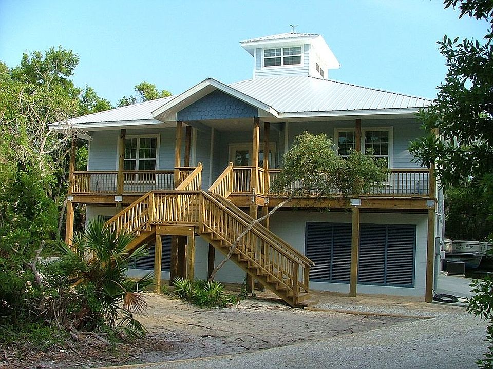 This beautiful home has a KEY WEST LOOK from the metal HIP ROOF with clerestory cupola to the sprawling decks! Impeccably maintained, this three-bedroom, 2.5-bath OPEN FLOOR PLAN home in a nice high area is one to see! Step inside and fall in love--the cupola in the sky-high VAULTED CEILING gives the great room a comfortable glow. Bamboo flooring runs throughout the home, and the kitchen has GRANITE countertops, brushed STAINLESS appliances and wood cabinets. Enjoy dinner in the adjoining dining area overlooking the deck and lush vegetation outside, or dine while soaking up the island fresh air--on the spacious covered back porch. Two screen-enclosed areas under the house make a great workout space, sitting area or storage for play equipment! This home is in excellent shape, and includes an extra vacant lot next door, with walking paths already in place! Enjoy the benefits of an impeccable home, an easy-to-maintain rock yard, four open under-house garages, and an EXTRA LOT! Wow!