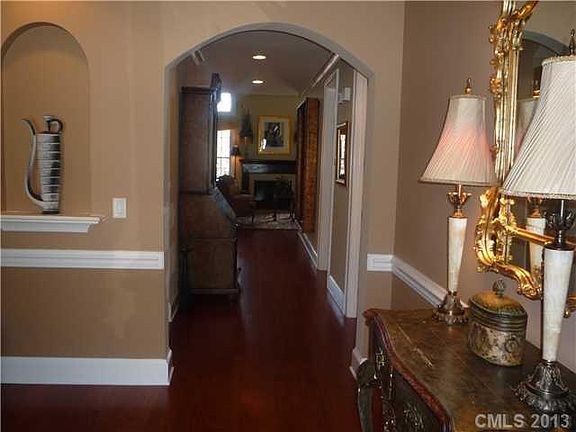 Beautiful, Immaculate and spacious End unit townhome in gated community just south of Ballantyne. Hardwoods on main, granite countertops, ss appliances, custom tilework, gas logs. Bonus room with custom built wet bar area with mini fridge! Retrofit central vac, security system recently installed as well as smart wiring.2 master bedrooms with balcony off of each.Shows like a model!