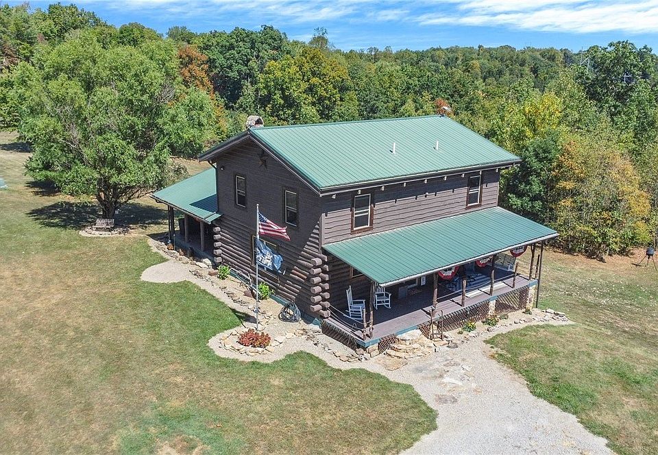 Unique property nestled on 21.05 gently rolling, wooded acres, offering unparalleled privacy & area to explore! This custom-built 4 bedrm log home features many recent improvements incl a 3+ car garage w/ a workshop, replacement windows, new interior doors & storm doors. an in-house water system, water softener, well, ceiling fans, AC & more! FF primary en-suite & laundry. Upstairs, you'll find 3 vaulted BRs & a spacious loft. The home showcases beautiful hardwood, laminate, & slate flooring. The great room is the home's centerpiece, featuring a lovely floor-to-ceiling stone fp. The freshly painted walkout lower-level w/ new stairs offers room for expansion. Add'l features incl a hot tub, saltwater above ground pool, lg storage barn, and chicken coop. Rare find in Licking Valley area.
