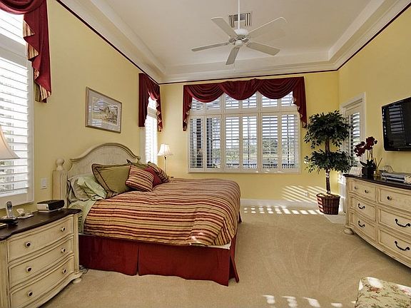 Possibly the best home site available in Cabreo at Mediterra. Featuring the highly desired Southwest rear exposure over serene lake views for maximum sun on your pool/lanai. This home's premium furnishings are also being included. Additional features include hurricane impact glass, upgraded plantation shutters, crown molding, wood cabinetry, and granite countertops to name a few. The outdoor screened lanai features an outdoor kitchen and an extended fenced backyard has been added. A tremendous value for a near new detached villa in Mediterra. The prestigious Mediterra Golf and Beach Club community offers nearly 1,700 acres of residential and open areas reminiscent of a classical countryside. Multiple levels of club memberships are available. The resort lifestyle beckons you with its amenities and activities. 36-hole Tom Fazio-designed golf course, Har-Tru tennis courts, state-of-the-art fitness center, private beach club right on the Gulf of Mexico. Everything you need to enjoy this picturesque community.