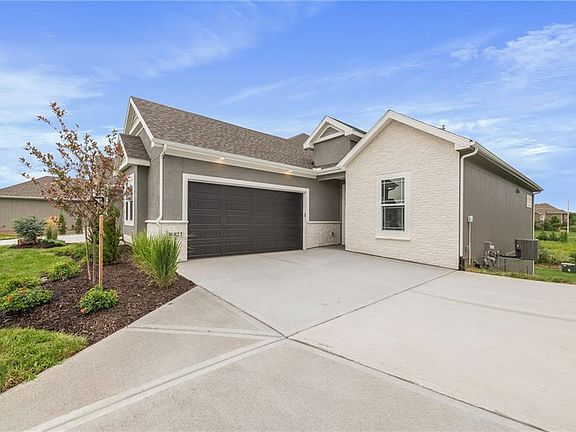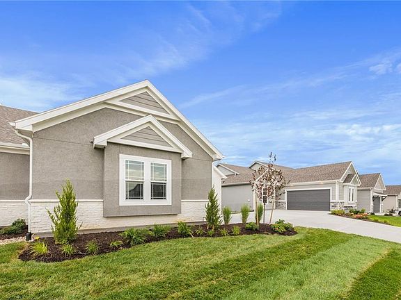 The Pioneer by Blue Dot Design & Build***Located on walkout Lot 17R*** This home is completely finished ***Ready to move in now*** Welcome to maintenance-provided living in south Olathe. Reverse 1.5 story plan features a spacious open floor plan w/ 10' ceilings, cozy fireplace and covered deck & patio. Custom kitchen cabinets w/painted finish & large kitchen island make family gatherings easy. Chef's kitchen with 5-burner gas cooktop, vented exhaust hood & walk-in pantry. Master bedroom suite features a zero entry walk-in shower with seat & huge walk-in closet that connects to the laundry room. There is a 2nd bedroom & bath on main level. Lower level features a big L-shaped rec room with tons of natural light plus a 3rd bedroom and bath. Plenty of storage space remains in the lower level on a walk-out lot. Photos & virtual tour are of the actual home.