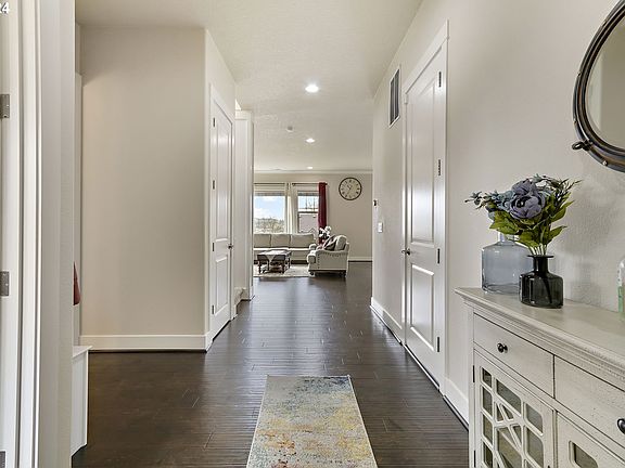 Beautiful lightly lived in Move-In Ready home is better than new already including Blinds, AC, Refrigerator, Smart features, PLUS a fully owned 16.8kw Solar System! Fantastic floorplan featuring 4 Bedrooms, 2.1 Baths, Den, Loft/Tech Space and Fully Finished Basement. You enter the home into the spacious foyer featuring engineered hardwood floors and high ceilings which are present throughout the main level. There is also a spacious den and powder bathroom. Continuing inside you are greeted with an abundance of windows and natural light in the large great living room, formal dining with wainscotting and gourmet kitchen equipped with a quartz island and countertops, stainless appliances, gas cooktop, and abundant cabinets. Upstairs you will discover the grand primary suite featuring dual closets and sinks, soaking tub and walk-in shower as well as 3 additional spacious bedrooms with ceiling fans and unique display alcoves above closets, a laundry room with utility sink and a loft/tech space perfect for multiple uses. Downstairs is a fully finished daylight basement which offers many options. Leave it as is for a huge family/bonus space, add additional bedroom(s), or convert it into a in-laws/guest apartment quarters for dual living. Beautiful territorial and sunset views are enjoyed from the deck and primary suite. The fenced backyard is accessible from the upper deck as well as lower-level slider and is a blank slate for customization by new owners. Includes Ring doorbell/outdoor cameras and Nest thermostat. Low HOA dues cover front yard maintenance, landscaping and access to Roshak Ridge Community Center with outdoor pool, weight room, party room, basketball court and more. Fantastic location and convenient proximity to high-tech employers, shopping, dining, entertainment, parks. Don't miss the opportunity to make this "lives like new - yet better" house your home!