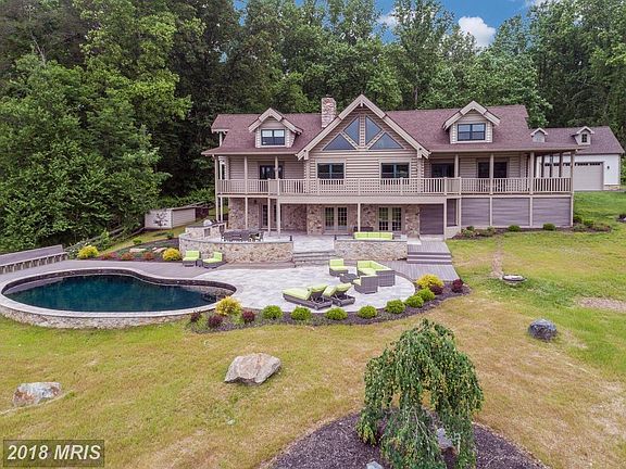 This TRUE ONE-OF-A-KIND log home is a dreamy, private country retreat w/ modern polish! Stunning outdoor space w/ salt water pool, travertine & Trex tiered patio & al fresco dining area w/ built-in LION BBQ & granite island. LL is an Entertainer's Dream w/ huge Wet Bar & an open, versatile floor plan that walks out to the patio. Custom 5-car garage with all the bells and whistles