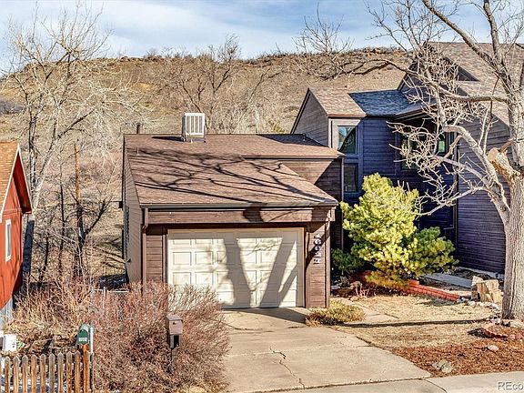 Location, Location, Location!!! No HOA fees!! This special townhouse in Golden, CO has 2 spacious bedrooms, one large, full bathroom, a covered deck facing the beautiful mesa views with periodic wildlife, a fenced yard, a small seasonal creek and an attached oversized garage. It is an end unit, with lots of windows, that backs up to acres of open space on South Table Mountain, along with walking/hiking/biking trails within walking distance. Vaulted living room ceiling with wood burning stove as well as new interior paint, new carpeting throughout and a new hot water heater add to the upgrades of this home. Also a full-sized dirt floor bottom level with potential to becoming a full finished basement or additional living space. Centrally located and a short drive to the mountains or to downtown Denver. Easy access and convenience to stores, schools, restaurants and historic downtown Golden.