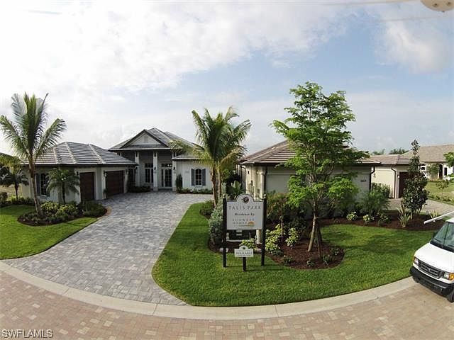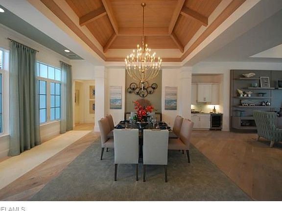 The NEW Caribbean model was designed by local architecture and planning firm Weber Design Group for custom homebuilder Sunwest Homes and features interiors by Design West. This new model is fully furnished and available for purchase priced at $1.895 million. Positioned near the 11th hole of Talis Park's Greg Norman-Pete Dye designed golf course, this single-story great room residence offers 3,527 sq ft and includes three bedrooms, three full baths, one half bath, formal study and a three-car garage. The open design concept stays in tune with today's high demand for attention to details and functionality for an active lifestyle. The contemporary, Caribbean influenced exterior is composed of a smooth stucco finish, flat tile roof, eyebrow arched windows and decorative Bahama shutters. The garage doors in a rich mahogany tone finish adds contrast. From the covered entry, a grand, single French door with side lights and transom above leads the way into a unique gallery foyer. To the right, a study is placed away from the main living areas providing privacy and retreat. To the left, a guest suite features a walk-in closet, private bath and easy accessibility from the three-car garage.