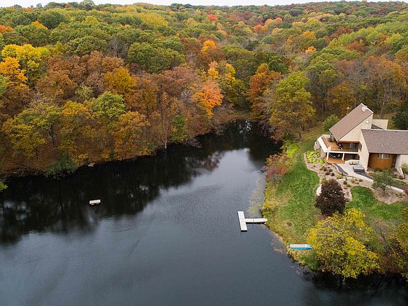 One of the most secluded and beautiful settings in Peoria County! Home is setup for solar panels with a large south facing roofline The views from every window are exceptional House siding is concrete stucco 2 level deck with amazing lake views 4 bedrooms and 5.5 baths 2 master suites Main level master is amazing with a private office offering lake and timber views 2 fireplaces vaulted ceilings Modern architectural design and finishing Incredible hunting and fishing with trophy class deer and huge bluegills Morton Building with concrete and electric miles of trails through timber mature majestic white pines close to Chillicothe and Mossville...easy commute to Caterpillar and downtown Peoria Staab Rd is being paved Tamarack pines on lake shore Paved driveway lower level has full kitchen Whole house Vac