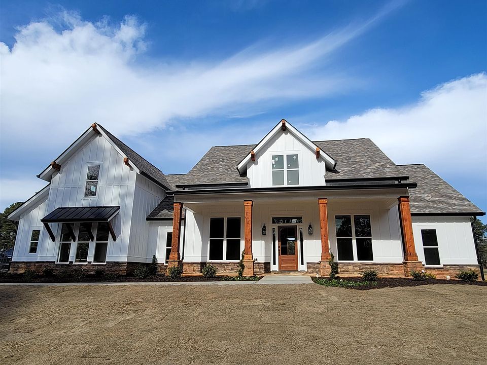 Welcome to Alcovy Lakes and all the country living it has to offer. With access to a community lake, playground and picnic area you'll feel right at home. This brand new construction Country Farm House is in a highly sought after area of Monroe. Over 3300 heated square feet and over 4500 square feet under roof in this brand new 5 bedroom 4.5 bath home with Master on the main on 2.38 acres. Kitchen has an oversized island and double ovens including quartz countertops, backsplash and pot filler over the stove. Features include, spray foam insulation in the attic, butler's pantry, walk-in pantry with electrical outlets, rear patio stubbed for outdoor kitchen, wood beams in the ceilings of Living, Master Bedroom, and Dining rooms. Master Bath has double vanity, with soaking tub and separate walk in shower. Nice walk in closet with ample space for all your clothes with entrance to laundry room making doing laundry more convenient. Home has a split floor plan with 3 bedrooms and 2 baths on the opposite side of the house with one bedroom having it's own full bath. Home also has a finished upstairs bedroom with it's own full bath as well. Entry area from garage features half bath and hall seat with storage as well as storage underneath the stairs. Fireplace is wood burning and oversized with stone accents and floating shelves on each side and includes gas hook up. Exterior features flag stone on front and rear porches, cedar wrapped columns with stone accents, irrigation, sodded yard