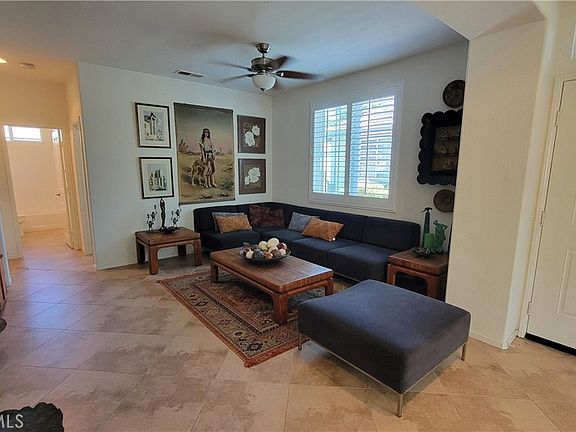 Discover the Springdale 2 Model, a beautifully designed 2-bedroom, 2-bathroom condo with 1,340 sq. ft. in the sought-after Four Seasons, a vibrant 55+ active adult community. This one-level home features large neutral tile flooring, plantation shutters, and a dedicated laundry room with a high-quality front-loading washer and dryer included. The gourmet kitchen boasts a walk-in pantry and ample cabinetry, while the private patio area, surrounded by magnificent shade trees, offers a lush, secluded outdoor living space. The home includes a spacious double car garage with tandem parking for guests nearby. Four Seasons offers resort-style living with three clubhouses, hiking trails, multiple pools, fitness centers, BBQ areas, sports courts, tennis, billiards, craft rooms, and libraries. The on-site restaurant provides delivery services, and entertainment facilities include a movie theater and salon services. The community is vibrant with numerous activities and social clubs tailored to an active lifestyle. Located near world-famous Cabazon shopping, dining options, and casinos, and with advanced Medical Centers just across the street, Four Seasons offers an unparalleled lifestyle. Schedule a viewing today to experience all that Four Seasons has to offer.
