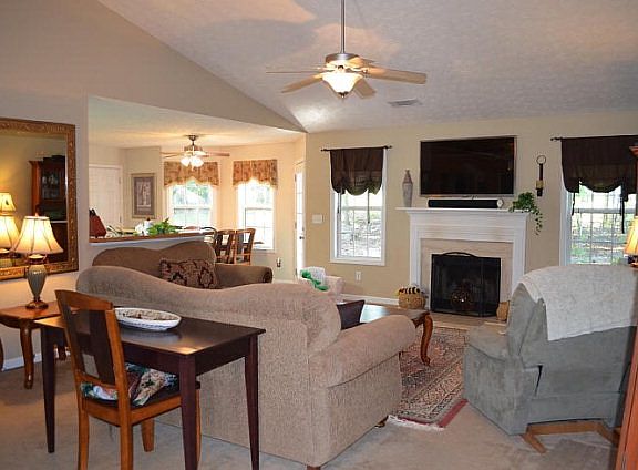 This lovely 4 Bedroom 3 bath Ranch has everything you need all on one level! Great open floor plan has formal Dining Room with chair rail and trey ceilings, Great Room has cozy Fireplace and vaulted ceilings, the Kitchen features stainless appliances, Breakfast Bar, Eat-in kitchen area, pantry and large Laundry Room. The master suite is spacious with trey ceilings, walk-in closet and double vanity sinks. Outdoors you will find a patio-perfect for cook-outs and entertaining! This home is well kept and move in ready.