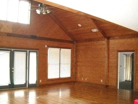 On 53+ acres, 3 bedrm/2 bath cedar siding home w/ full wrap around porch overlooking a 1 acre pond! Great room has soaring tongue & groove ceiling with cedar beams. Hardwood floors, open floor plan, lots of natural light. Kitchen has long bar, breakfast nook, separate laundry room. Both bathrooms tiled. Is handicapped accessible. Needs a little TLC to make this your own little piece of heaven!