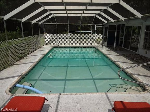 This South Fort Myers 4 bedroom pool home on an over sized and fenced yard offers a lot of home for the money. Home backs up to storm water canal and both sides of yard have mature landscaping for extra privacy. The large screen in lanai has a covered entertainment area for enjoying the south Florida weather and a dedicated pool bath. Inside features include split floor plan, kitchen with lots of cabinets, stainless french door refrigerator, master has large walk in closet. The two car garage is spacious and offers plenty of storage. Located off Overlook Drive (Cypress Lake and Summerlin Blvd), this neighborhood is extremely convenient to Florida SouthWestern College, beaches, and downtown Fort Myers. Easy to see.