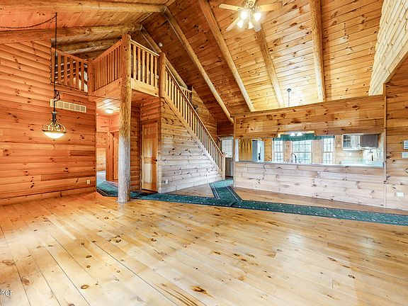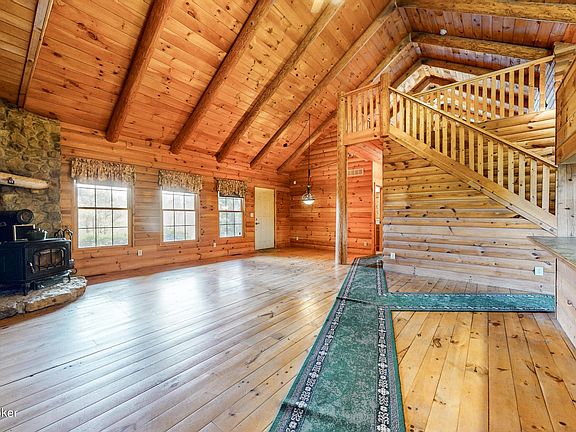 Welcome to your dream retreat nestled on 23 acres of natural beauty! This charming log cabin offers the perfect blend of rustic charm and modern comforts, boasting 3 bedrooms, 2.5 bathrooms, and a wealth of desirable features. As you step inside, you'll be greeted by the warmth of the wood interior and the cozy ambiance of the fireplace in the spacious living room. The open-concept layout seamlessly connects the living area to the kitchen and dining space, making it ideal for entertaining guests or enjoying quality time. The eat-in kitchen features ample counter space and plenty of storage for all your culinary essentials. Upstairs, a charming loft area offers additional living space, perfect for use as a home office, reading nook, or relaxation area. Retreat to the spacious primary bedroom, complete with an en-suite bathroom and private access to the covered back porch, where you can unwind and soak in the serenity of nature.