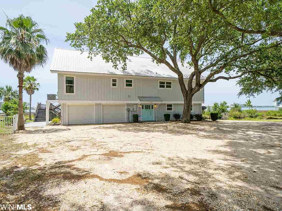 LAGOON FRONT with incredible views! BRAND NEW STAIRS & PIER W/ 20'X24' DECK. Seller only pays $1,124 yearly for flood insurance. 5 bedrooms, 4 full baths, 2 half baths, 2 kitchens provides ample space for a full time residence or fun second home to make great memories. Hardy board siding and metal roofing for endurance. Three AC units, 3 car garage (one side is tandem parking), sprinkler system, fish cleaning station, new bulkhead, large screened porch, large open decking, pier with boat docking (scheduled for repairs from Sally) and a launch for jet ski/small boat. Main living level has kitchen with granite counters, hardwood flooring, all bedrooms with their own baths, sunroom, spacious master bedroom with 2 walk in closets. Third floor loft has pool table, foosball, room for seating and beds along with a half bath. Entire first floor can be closed off and used as a separate living area with 2 bedrooms, a kitchen, full bath and washer/dryer hook ups. No room for a pool on lagoon side of home. Agent is related to the seller.