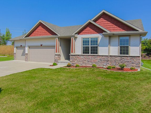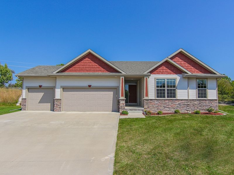 Stunning ranch home on a half acre lot in a cul-de-sac in Clive. Lovely curb appeal with beautiful landscaping and stone accents. Welcoming entry with tile floors with maple hardwood throughout the rest of the main level and 9 foot cieling on main level. Large living room features a corner gas fireplace with tile surround and wood mantle. The living room flows into the dining room and kitchen. The kitchen features Saddle brown Architectural series cabinetry with soft close drawers and a tilt out panel, a pantry, granite counter-tops, a breakfast bar, a planning desk, and stainless steel appliances. Off the dining room is a gorgeous sunroom that access the back deck. Huge mud/laundry room with plenty of locker hooks and storage. The main level master suite features a tray ceiling, a walk-in closet, and en-suite bathroom features dual vanities and marble counter-tops. There are another two bedrooms and another full bathroom on the main level. The lower level is finished with a large entertaining room with a wet bar that can easily sit five. Awesome theater room with multi-level seating and soundproofing that could easily function as a playroom or office also. The lower level is completed with a fourth bedroom and bathroom. Three car attached garage that has been wired for baseboard heat. Out back is a huge extended deck that wraps around and has two staircases down to the yard and patio. Beautiful and private backyard with abundant landscaping. This home is a must see! Call the homeowner for a showing today! ATTENTION BUYERS: FSBOHomes offers FREE buyer support including an onsite real estate attorney that will answer questions and complete a purchase agreement. To learn more go to FSBOHomes > Buyer Support.