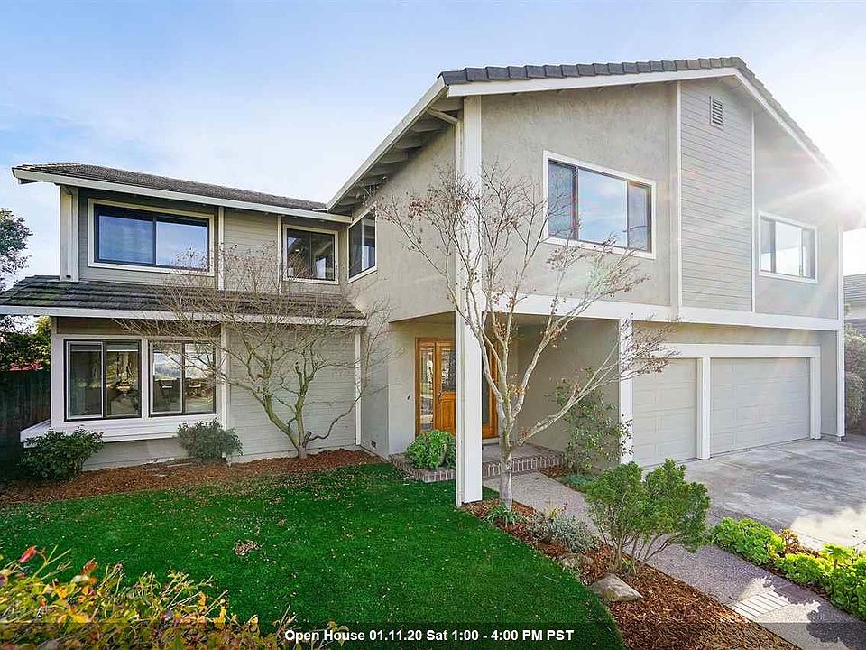 Built 1988, 5-bedroom (includes non-conforming bedroom), 3.5-bath gem is perched at the top of the Columbia Community. The comfortable two-story home with a 3-car garage offers expansive views of rolling hillsides down to the lights that surround San Francisco Bay. Remodeled kitchen w/refinished hardwood floors, granite counters, newer SS appliances & gas range. Bathrooms updated. Updated baseboards throughout. Large upstairs recreation room plus full bath supports multiple activities - great for families & friends. Huge deck provides a spacious area to lounge or entertain with spectacular views from sunrise to sunset. Edible grapes, citrus, fig and loquat trees surround the landscaped stairway and backyard. The tool shed on the lower left side is perfect for storage or workshop projects. A short distance finds the community pool, jacuzzi and kids' pool. Exemplary Castro Valley schools are highly rated. Commute to SF via CV BART, or enjoy easy access to I580, I680, I880.
