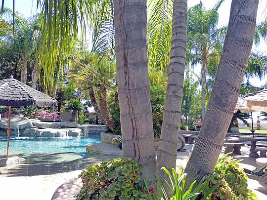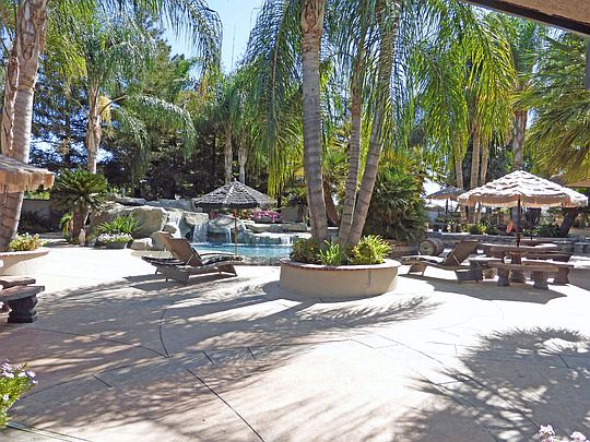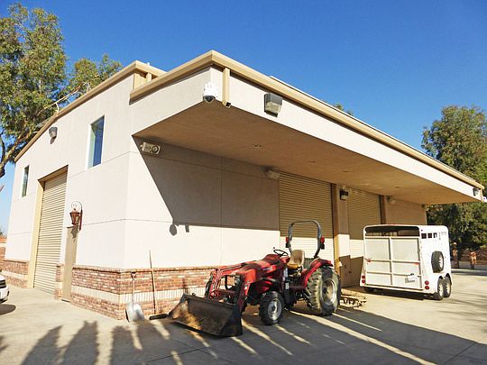 Rare opportunity in Harvest Moon Ranch Estates. The most complete horse property every offered! Stunning 5,920 s.f. home, 640 s.f. guest/bunkhouse with bath, barn, 2,688 s.f. RV shop with bath, hay barn, covered trailer parking, RV parking with dump station. Lighted roping arena, fabulous outdoor kitchen, resort style pool complete with elaborate waterfalls & slide. Gourmet kitchen, 5 bedrooms including expanded master suite with enormous closet, 3.5 baths in main house, office + bonus room loft, game parlor, cowboy saloon & refrigerated wine cellar. All situated on 2.92 acres of lush grounds, meticulously kept, on easy access corner lot with circular drive. Extensive 170 panel solar installed to keep power bills LOW. Truly a must see property.