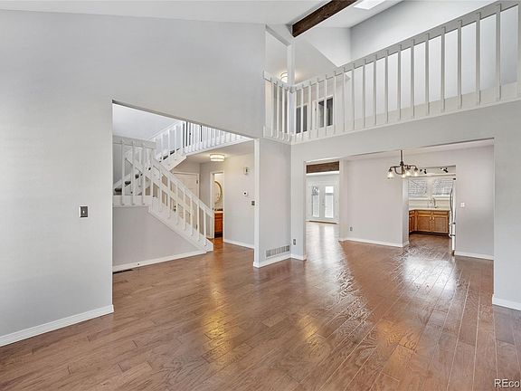 Impeccably maintained, 4 bedroom/4 bath home, located on a cul de sac in Piney Creek. This immaculate home features all new flooring on the main floor, with vaulted ceilings, new paint and new windows in the living room and front bedroom. The open floor plan features a formal living and dining rooms, spacious kitchen with newer stainless appliances adjacent to the breakfast nook and inviting family room with fireplace and built in shelving and wet bar. The main floor also offers access to the new trex deck to enjoy dining, relaxing and gardening in the beautiful Colorado weather. Up the staircase and you are greeted by a spacious loft with vaulted ceilings and two new skylights that truly warm the space. It's the perfect area for an office or playroom. Two generous sized secondary bedrooms can share the full hall bath. Retreat to the wonderful primary bedroom with loads of closet space, vaulted ceilings and mountain views. The 5-piece primary bath awaits your personal touch! All newer carpet adorns the upper level. If you need more space, then the finished walkout basement offers a non-conforming 4th bedroom, family room space, pool table area, powder bath, wet bar and Laundry . All fresh new tiled flooring as well completes this area. Other amenities you will enjoy are the three car oversized garage, lovely large fenced yard with garden beds, new roof, gutters, skylights, new furnace and air conditioning units, all new paint and flooring throughout the property, new windows in the living room and front bedroom, light fixtures and the amazing Trex Deck! All within close proximity to the award winning Cherry Creek Schools, Piney Creek Community pool ad tennis courts, shopping and so much more! Come make this house your home!