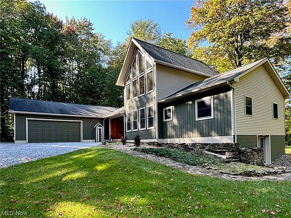 Welcome to your quiet country life, tucked down a curved driveway in the woods. Step inside to the open plan kitchen/ dining area with wood burning stove, and door to the stone patio with views of the pond. The great room lets in amazing natural light on both sides, and up the spiral stairs is a charming loft, perfect for an office library, studio or even a bedroom if desired. Look out the high windows in the vaulted ceiling to the views of trees and clouds all around you. The bedrooms are on either ends of the house, and each has its own full bathroom adjacent. The master bedroom has a door to the patio also. There is a laundry/ mud/ utility room off the kitchen with a half bath that leads to the huge attached 3 car garage, perfect for storing your toys, lawn equipment, and wood for the stove. Outside is a path leading around to the walk out basement, which is waiting to become a man cave, workout room, woodworking room, or all three.