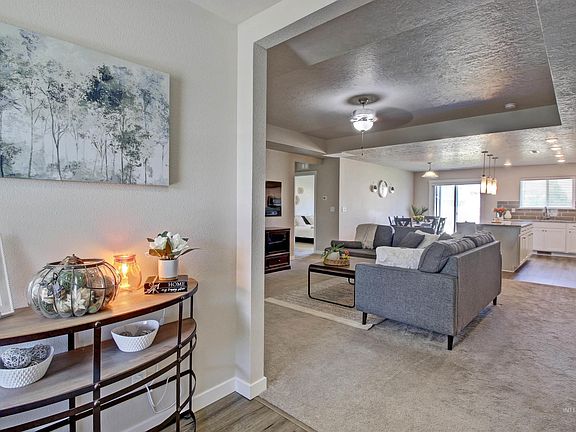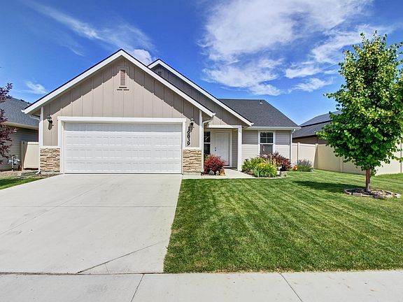 Nearly new home with beautiful finishes! This open concept plan lives larger than it is with a sparkling modern kitchen that boasts a LARGE granite island/breakfast bar, beautiful white cabinetry w/crown & full subway tile backsplash, 5 Burner cooktop, Stainless Steel appliances, pantry, upgraded pendant lighting & fridge. Living Rm w/impressive recessed ceiling. Relax in the primary bath & the oversized soaker tub. Good sized primary bedrm w/custom up/down blinds, walk-in closet & views to the backyard. 2" vinyl blinds throughout & a split bedroom plan. Fully vinyl fence with side storage w/perma-bark. HERS energy star rated for energy savings. Popular Alturas Plan. Subdivision is next to Orah Brandt Park, a 28 acre city park featuring tot lot, splash pad, 10 station workout circuit, frisbee golf and rose garden. Shopping including Treasure Valley Marketplace and Costco & easy freeway access close by! Welcome to this lovely home!
