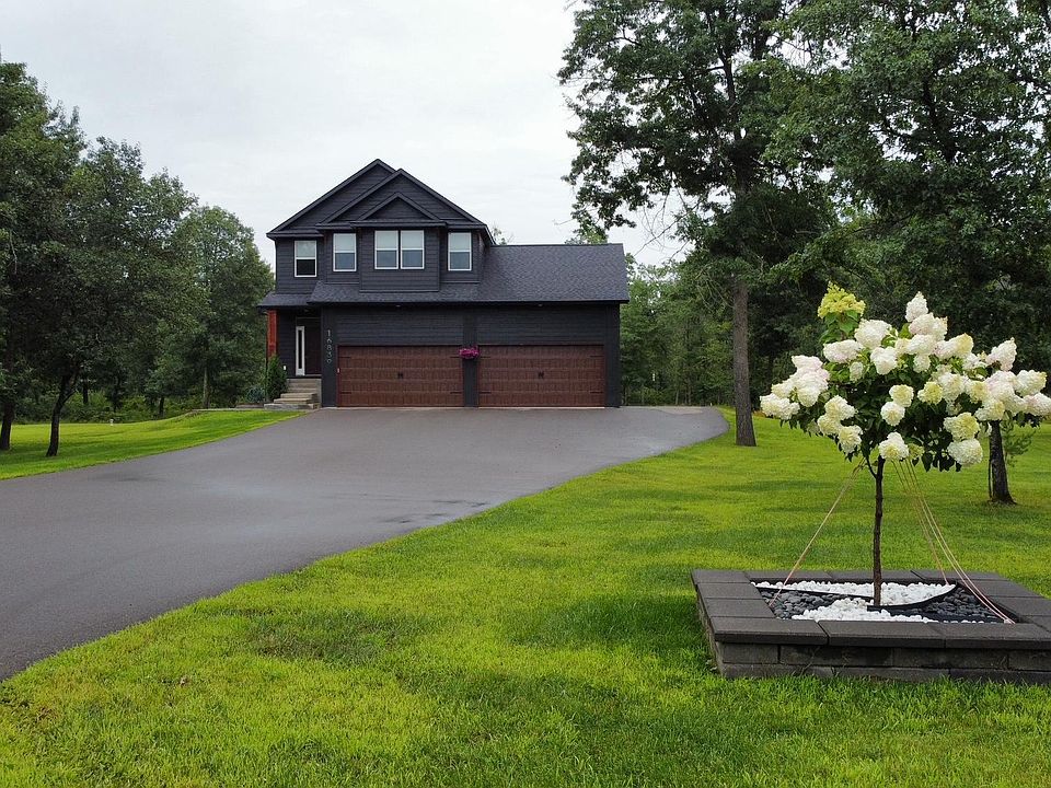This stunning, custom-built 5-bedroom, 4-bath home, built in 2022, is nestled on a picturesque 2.5-acre wooded lot in Barbeau Rd Estates. Designed with style and functionality in mind, it boasts high-end upgrades, including granite countertops, a sleek tile backsplash in the kitchen, a cozy fireplace, custom lockers, and an irrigation system. The spacious layout features four bedrooms on the upper level, a loft, and a convenient upstairs laundry. Enjoy the bright and inviting sunroom, as well as the newly finished lower level which includes a family room, full bath and a bedroom. A four-car garage provides ample storage for all your toys. A cement parking pad on the south side of the garage can store your RV or boat. Ideally situated between Baxter and Nisswa, this home offers easy access to shopping, dining, and Gull Lake while maintaining the privacy of a wooded retreat.