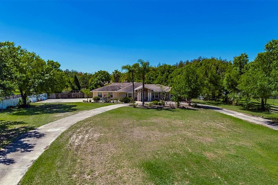 There is room to roam on this private equestrian estate. At just over two acres, this prime property is tucked away down a dead-end street, and is adjacent to a 660-acre park, with plenty of trails to give the family horse all the exercise they need. The property boasts a fully fenced yard, four concrete 16-ft stables that welcome horses, chickens, or other county permitted livestock, 5 fenced and covered kennels, and a power-supplied shed. Make any adjustments to the property you want as there is no HOA! Plenty of room to store your boat or RV. Septic tank replaced in 2016. Well is more than 300 feet deep. The custom-built home presents endless opportunities. Dual owner's suites provide luxury for the owner and guest alike. Two other bedrooms are joined by a full bath, and still another bedroom is perfect for a home office. There is closet space galore! The gathering area is huge and has the potential to become a place for entertaining guests or just having the family for Thanksgiving dinner. The great room leads out to a large screened, tiled patio and beyond, a custom-built pool with natural rock coping. It is oversized, and deep! The possibilities of this home are limited only by your imagination. Invite friends for an impromptu pool party and barbecue. It's only a five-minute trip to the store for last minute groceries! You can run your business from home, and if needed, it's a twenty-minute drive to the airport for that trip to call on the out of state client. Come see for yourself--this is a home that can offer the best of country living, just minutes from the city.