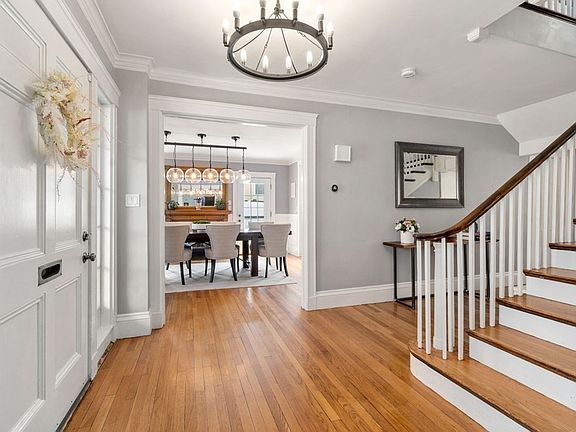 Classic meets modern comforts in this 5+ bed Colonial sited on prestigious Comm. Ave. at base of West Newton Hill. This light-filled home boasts high ceilings & generous rooms on the inside, w/ sprawling newly-rebuilt deck (overlooking Boston Marathon!), private fenced yard & charming gazebo outside. 2-car attached garage leads to new mudroom w/ laundry & full bath. Living & dining rms, both w/ gas fireplace, & eat-in kitchen & powder rm complete 1st flr. On 2nd flr, relax in your ample primary suite w/ spa tub & walk-in closet, find a beautiful bedroom w/ fireplace & en-suite, & add’tl bedroom/study. 3rd flr offers 3 versatile rms for BRs/home offices plus full bath. Gut-renovated basement has separate entry, kitchenette, full bath, laundry, space for exercise/play & storage. Short distance to Peirce school, quick access to I-90/95, walkable to T, & add’tl back driveway give all the conveniences. Meticulously updated by current owners to provide all the comforts for today’s lifestyle.