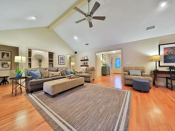 This updated pool home sits on 1.8 acres of peace and quiet with an 18'x45' pool! Lovely neighborhood with no restrictions. Full brick home with all wood floors and tile, carpet only in the 4th bedroom. Renovated kitchen has stunning cherry cabinets, Kitchenaid stainless steel appliances including 5 burner electric stove, wall oven, warming drawer, granite and two windows! Wet bar has built in ice maker, wine rack and sink which is wonderful for entertaining. Huge family room has custom built ins, brick woodburning fireplace and hearth, and overlooks the pool. Master bedroom is enormous, and renovated master bath has a jetted tub, walk in shower and modern vanity. In the hall by bedrooms 2 and 3 is a computer station in the closet. Secondary bedrooms are oversized and all have walk in closets and wood floors. Big 4th bedroom/bonus room has a multitude of uses and an attached bath.