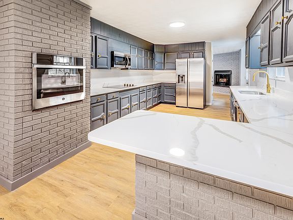 UPDATED BRICK RANCH w/ Flat Yard + 2-Car Driveway + NEW Roof! Covered porch is great for an early morning rain, covered back deck is perfect for afternoon relaxing! All new LVT flooring + paint throughout, consistent + bright! Charming foyer area welcomes you home, nice natural light + character. Large updated kitchen has quartz countertops + new SS appliances. Bonus gathering room offers adaptability + extra SPACE, plus w/ fireplace! Primary Suite has own Full-Bathroom! TONs of storage options in basement, plus spacious epoxied garage... SEE NOW!!!