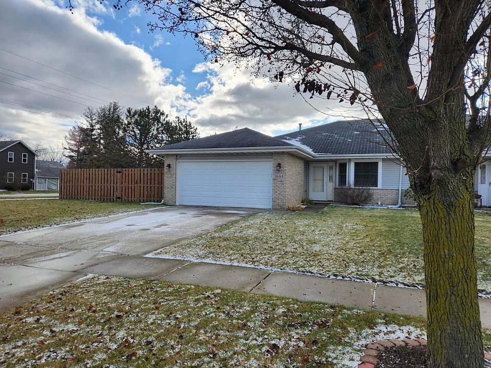 Beautiful, well-maintained duplex. 2 bedroom/2 bath ranch. New windows in 2019; new patio slider in 2020. New dishwasher and stove 2019; new refrigerator 2020. Side door added to garage for ease in accessing the yard. Large fully-fenced yard with fire pit.Main bedroom has walk-in shower and a large walk-in closet. Additional closet in main bedroom. Open concept eat-in kitchen, dining room and living room.No HOA fees.