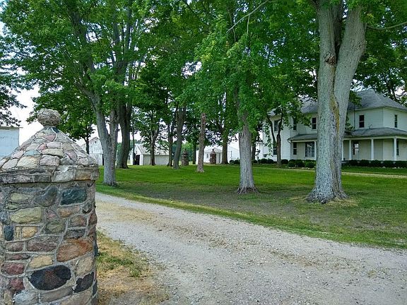This 5+ bedroom, two full bath, 3100+ sq ft well maintained vintage farm house sits on 5.8 acre traditional farm (subject to survey) on quiet country road surrounded by farm fields. Home includes: New Roof (2020), Updated 1st floor full bath and Laundry room (2020), Original Woodwork, Pocket doors, French Doors, Panoramic Window (100 sqft), Wrap Around Porch, Farmhouse Sink. Also 9ft ceilings, plank wood floors throughout, vintage pantry cabinetry, plate rail, country style kitchen cabinetry, dual swing flapper door, widows walk, storm windows, main and servant's staircases, ceiling fans, and carpeting. Outside, the property features rolling grass pasture, a circle driveway lined with mature trees, and stone gate pillars. Some Outbuildings include: Quad Door Bank Barn, Modern 54x54 Metal Pole Building with high bay doors and concrete floor, Vintage Blacksmith/Machine Shop, double 4 herringbone Milking Parlor, Silo, concrete Feedlot with lean-to livestock shed, 6600 bushel Grain Bin, double door Grainery Shed Property may also be ideal for Bed and Breakfast, Agritourism, Organic farm, Small or Large Scale Livestock Production, or Dairy.