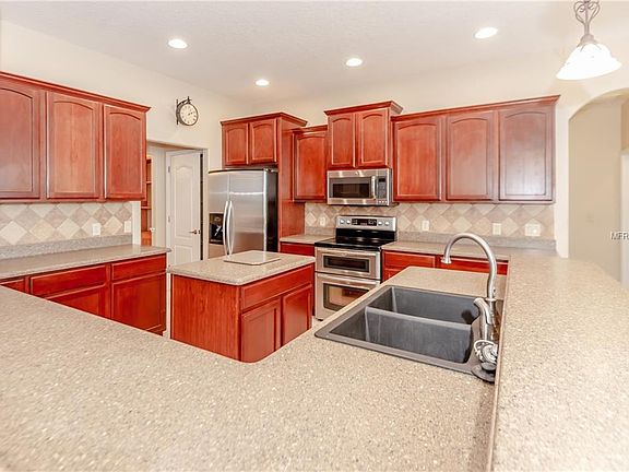 Custom built home in a small gated community, of only approximately 31 homes. There is a pond just down from the home that you can enjoy from the front porch and a fresh water canal that leads into Lake Toho ,behind the home.Enjoy relaxing evening from your back porch or enjoy a swim in the heated pool. There is quite a bit of space in this home. You have 2 bedrooms downstairs, as well as 2 upstairs. There is a large bonus room upstairs for an additional space, to use however you like. Features include a gourmet kitchen with corian counter tops ,stainless steel appliances,custom cabinets and a central vacuum. Another bonus feature is a large pantry with customized shelving. There is a built-in custom hutch with open shelves on top and cabinets at the bottom ,for additional storage, located in the dining room. Enjoy the surround sound in the living room with custom built-in media unit. There are stunning built-in closet organizer's in the master bedroom closet and closet in upstairs bedroom. There are so many features in this home, you have to see for yourself. Among the many features already noted ,there is a termite baiting system,custom storm panels for the windows and amazing shelving throughout the garage.